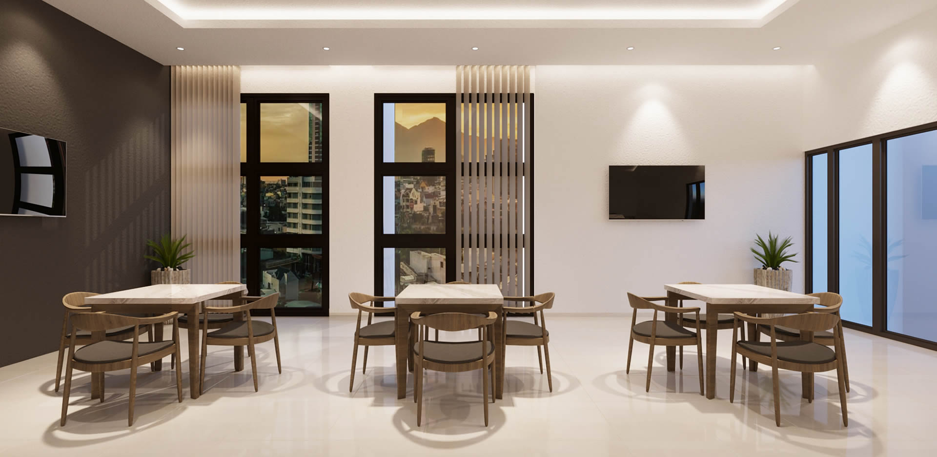 Tầng 3, 4: Khu sinh hoạt cộng đồng, khu tắm Sauna, hồ bơi dành cho người lớn và trẻ em, đường chạy bộ 100m, phòng tập Gym, nơi tập luyện Golf, nhà trẻ tiêu chuẩn quốc tế, công viên sân chơi cho trẻ em...