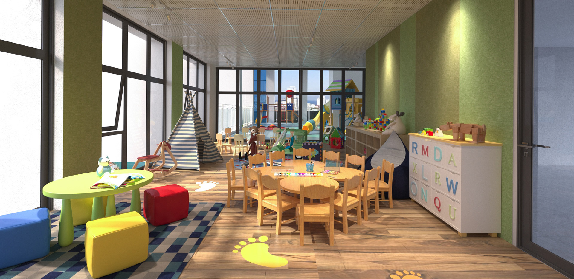 Tầng 3, 4: Khu sinh hoạt cộng đồng, khu tắm Sauna, hồ bơi dành cho người lớn và trẻ em, đường chạy bộ 100m, phòng tập Gym, nơi tập luyện Golf, nhà trẻ tiêu chuẩn quốc tế, công viên sân chơi cho trẻ em...